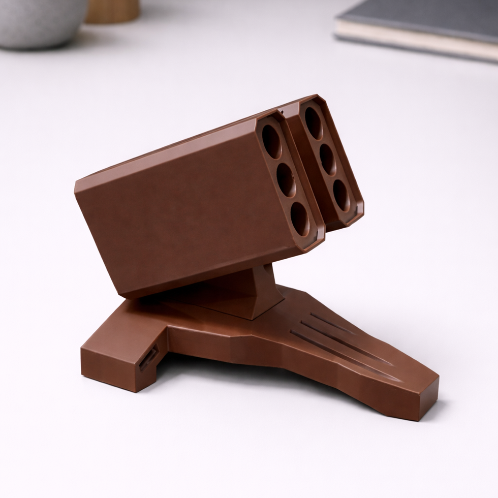 Modern, durable desktop pen stand with a bold geometric design, offering organized storage for multiple pens while enhancing your workspace with a clean, stylish, futuristic aesthetic.
